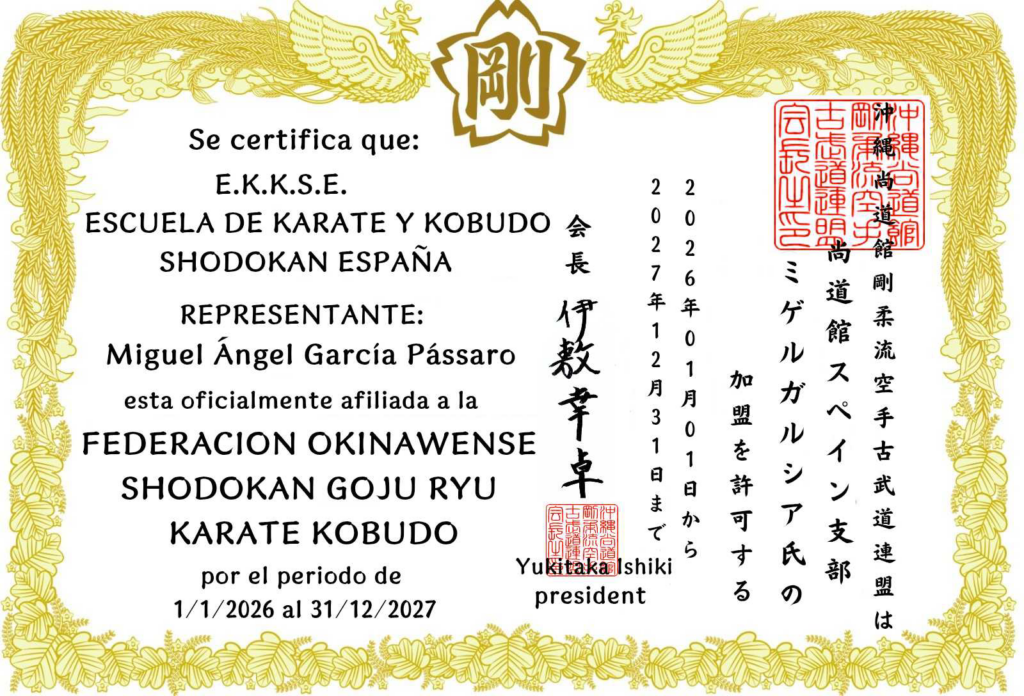 Representante en España de la Federación Okinawense Shodokan y